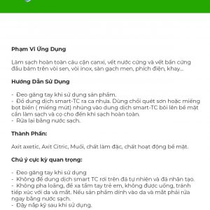 Thông số kỹ thuật của SMART TC-TẨY SẠCH SEN VÒI INOX- HCNA chi tiết như sau: