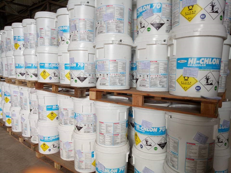 Hiện nay, có #10 loại hóa chất xử lý nước bể bơi được sử dụng phổ biến nhất đó là: Chlorine (dạng hạt trắng đục), Đồng Sunfat, SODA, trợ lắng PAC 31%, HCl 32%, Javen, Xút Vảy, Oxy Già, PH-, PH+. Mỗi loại hóa chất có những tác dụng và cách sử dụng khác nhau nên quý khách hàng phải rất chú ý vấn đề này.